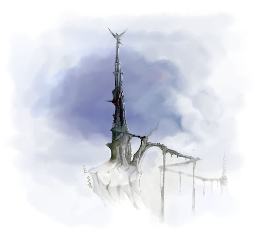 Experimentando con Mypaint, una pequeña aplicación que permite hacer ilustraciones estilo tradicional, hice para este caso una especie de Ángel de la independencia, mediante Photoshop corregí los problemas de color y realcé las esquinas porque este programa difumina demasiado los bordes.